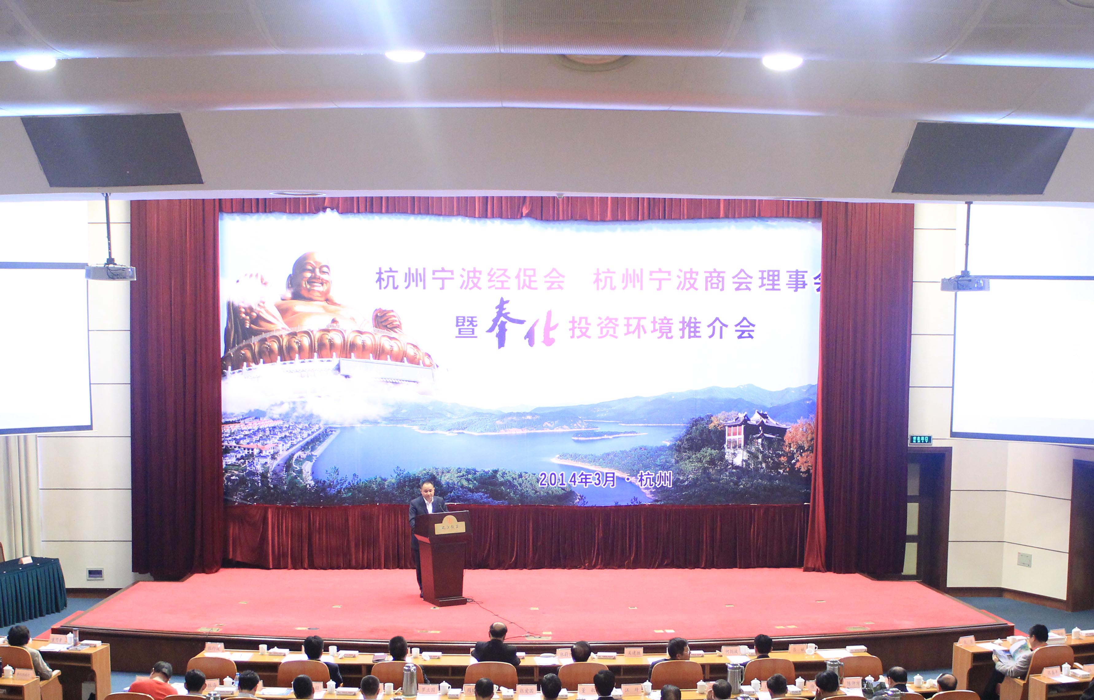 3月29日下午,杭州宁波经济建设促进会、杭州宁波商会理事会暨奉化投资环境推介会在杭州之江饭店举行。